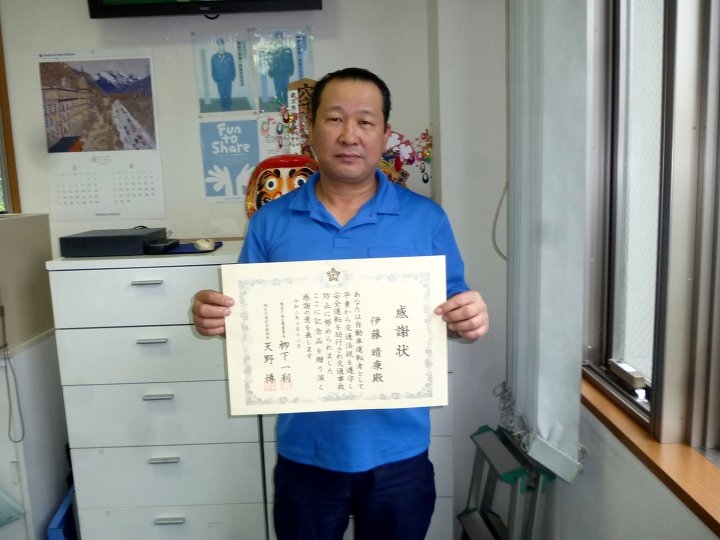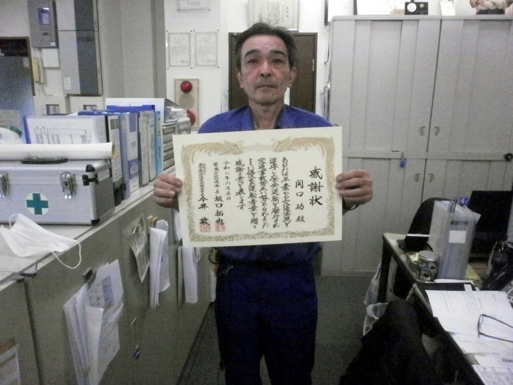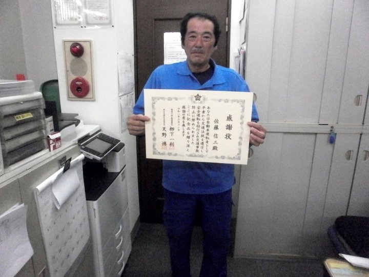 本年度は、新型コロナウイルスの感染拡大を受け、表彰式は中止となりましたが、弊社社員3名が、交通安全に努め、継続して10年以上無事故、無違反の模範運転を励行されて来た功績をたたえ、警視庁福生警察署より、感謝状を授与されました。